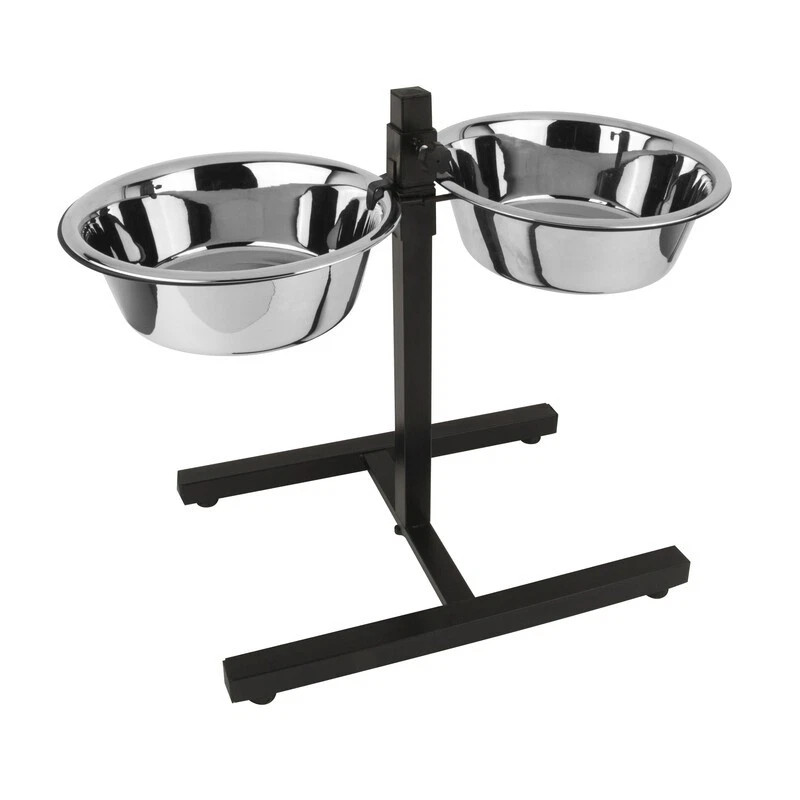 Il supporto in metallo permette di regolare l'altezza delle ciotole, adattandosi alle esigenze dell'animale e riducendo lo sforzo su collo e articolazioni.