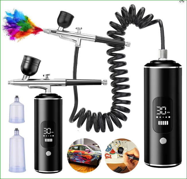 Mini Aerografo Professionale Portatile – Kit Completo con Compressore a LED