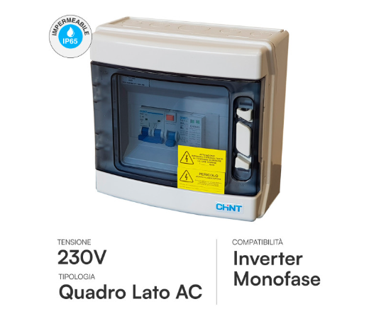Quadro AC: Include interruttore magnetotermico e differenziale per la protezione della linea domestica.
