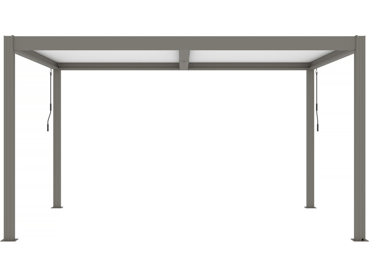 Pergola bioclimatica in alluminio - LED integrati in tutta la pergola - Dimensioni: 300 x 400 x 220 cm - Materiali: alluminio - Struttura color taupe e lamelle bianchePergola bioclimatica "Winsor" in alluminioLa pergola è la soluzione ideale per il vostro patio o terrazzo. È l'estensione perfetta per godersi la vita all'aria aperta.Questo pergolato in alluminio è un vero e proprio rifugio per vivere all'aria aperta. Domina la luce e goditi appieno il tuo giardino con i tuoi amici e la tua famiglia anche in caso di tempo incerto.Questa pergola è progettata in alluminio per resistere nel tempo ai capricci del tempo.Questa pensilina è stata realizzata per offrire alla vostra terrazza eleganza e utilità! Il suo colore grigio scuro si adatta perfettamente a tutti i giardini e il suo tetto perfettamente impermeabile si apre o chiude grazie alle lamelle basculanti azionate da una manovella. Il drenaggio dell'acqua piovana avviene tramite un innovativo sistema di drenaggio dall'interno dei montanti.Logica bioclimaticaLa logica bioclimatica che proponiamo attraverso queste pergole mira a sfruttare i possibili vantaggi di un luogo proteggendosi dalle intemperie.Lo scopo dell'architettura bioclimatica è quindi quello di sfruttare gli effetti benefici del clima (cattura solare in inverno, ventilazione in estate) e controllare gli effetti negativi (troppo sole in estate può causare il surriscaldamento del luogo, esposizione al vento prevalente in inverno aumenta le perdite di calore)La pergola bioclimatica è quindi un riparo che si adatta alle intemperie, e sono proprio queste lamelle a renderlo possibile.Le lame possono essere orientate manualmente. In posizione aperta permetteranno la circolazione dell'aria, mentre in posizione inclinata fungeranno da parasole per questi beneficiari.Le lamelle della pergola bioclimatica possono essere anche in posizione chiusa per sigillare il terrazzo (o qualsiasi altro tipo di terreno) dalla pioggia e dai raggi solari (in particolare dai raggi UV), ma anche dalla neve.Le lamelle orientabili della pergola bioclimatica permettono quindi di scegliere l'inclinazione per avere più ombra in estate, guadagnare luce nella mezza stagione, "intrappolare" aria fresca in estate per godersi l'aria aperta, godere di più luce e apporto di calore in inverno.Porterà un look contemporaneo al tuo patio, alla tua terrazza o alla tua Spa.In caso di nevicate abbondanti, si consiglia di aprire le lamelle orientabili per non appesantire eccessivamente la pergola.