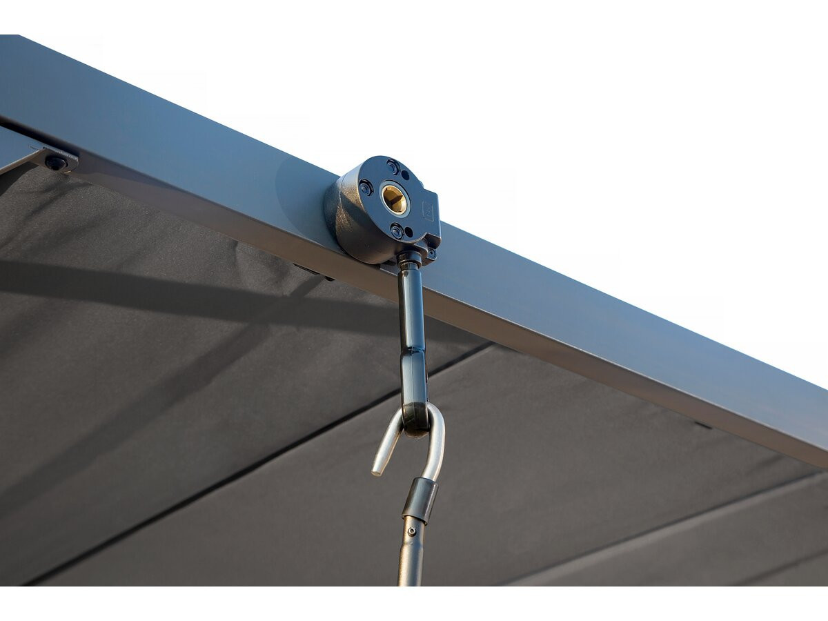Pergola con lamelle regolabili - 3 x 4 x 2,20 m - Grigio - Struttura in metallo e lamelle in tessuto poliestere da 180 g/m² - 4 piedi (60 x 60 x 0,92 mm)Pergola bioclimatica in tessuto da 3 x 4 m - Antracite:Scopri l'eleganza e la funzionalità della nostra pergola bioclimatica da 3 x 4 m con lamelle in tessuto. Questa pergola, progettata per offrirti un esterno versatile, unisce design moderno e innovazione tecnologica.Le lamelle in tessuto di alta qualità della nostra pergola bioclimatica consentono di controllare la luminosità e la ventilazione dello spazio esterno in base alle preferenze. Grazie al design ingegnoso, puoi regolare l'angolazione delle lamelle per ottenere ombra fresca o sole caldo, creando un ambiente confortevole in qualsiasi stagione.La nostra pergola bioclimatica da 3 x 4 m con lamelle in tessuto si adatta a tutte le tue esigenze: che tu voglia creare uno spazio tranquillo e rilassante in giardino, una zona pranzo all'aperto per ricevere ospiti, o anche un riparo per il veicolo.