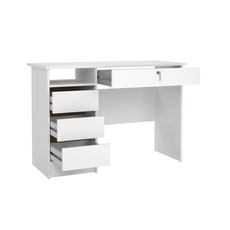 Configurazione a 4 Cassetti: Dispone di 3 cassetti laterali per cancelleria e documenti, più un ampio cassetto centrale posizionato sotto il piano di lavoro.