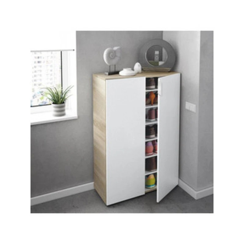 Dotata di due ante battenti e 6 ripiani interni, la scarpiera offre una flessibilità di stoccaggio ottimale. Lo schienale chiuso assicura la protezione delle scarpe dalla polvere e garantisce una maggiore stabilità alla struttura. Con una profondità di 36 cm, questo mobile è abbastanza capiente da ospitare anche calzature di taglia grande o piccoli stivali, mantenendo un profilo snello che non ingombra il passaggio.