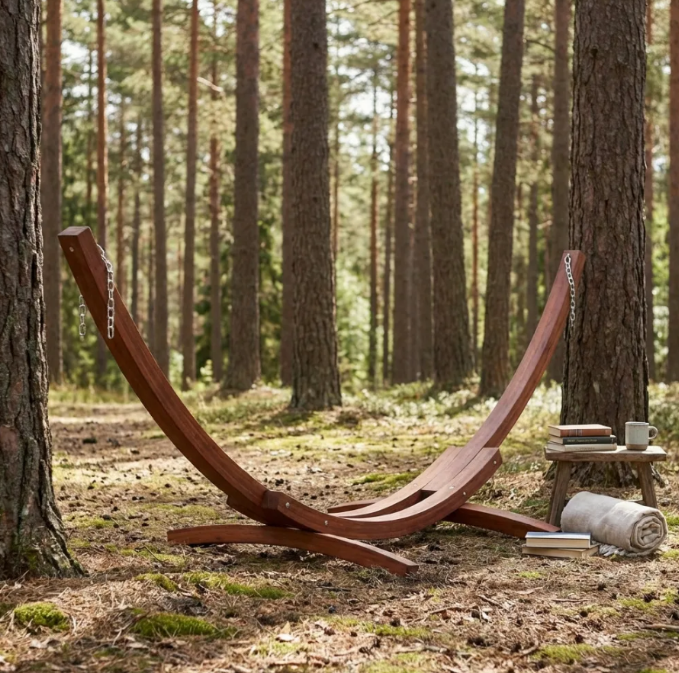 L'Art. CAP 14390 è il supporto autoportante di alta gamma realizzato interamente in legno di larice, una delle essenze più pregiate e resistenti per l'arredo outdoor. La sua linea curva e slanciata è progettata per offrire la massima stabilità e una sospensione perfetta per qualsiasi amaca singola. Il legno di larice è naturalmente ricco di resine che lo rendono eccezionalmente durevole e resistente all'umidità e agli agenti atmosferici, garantendo una struttura solida e sicura per anni.
