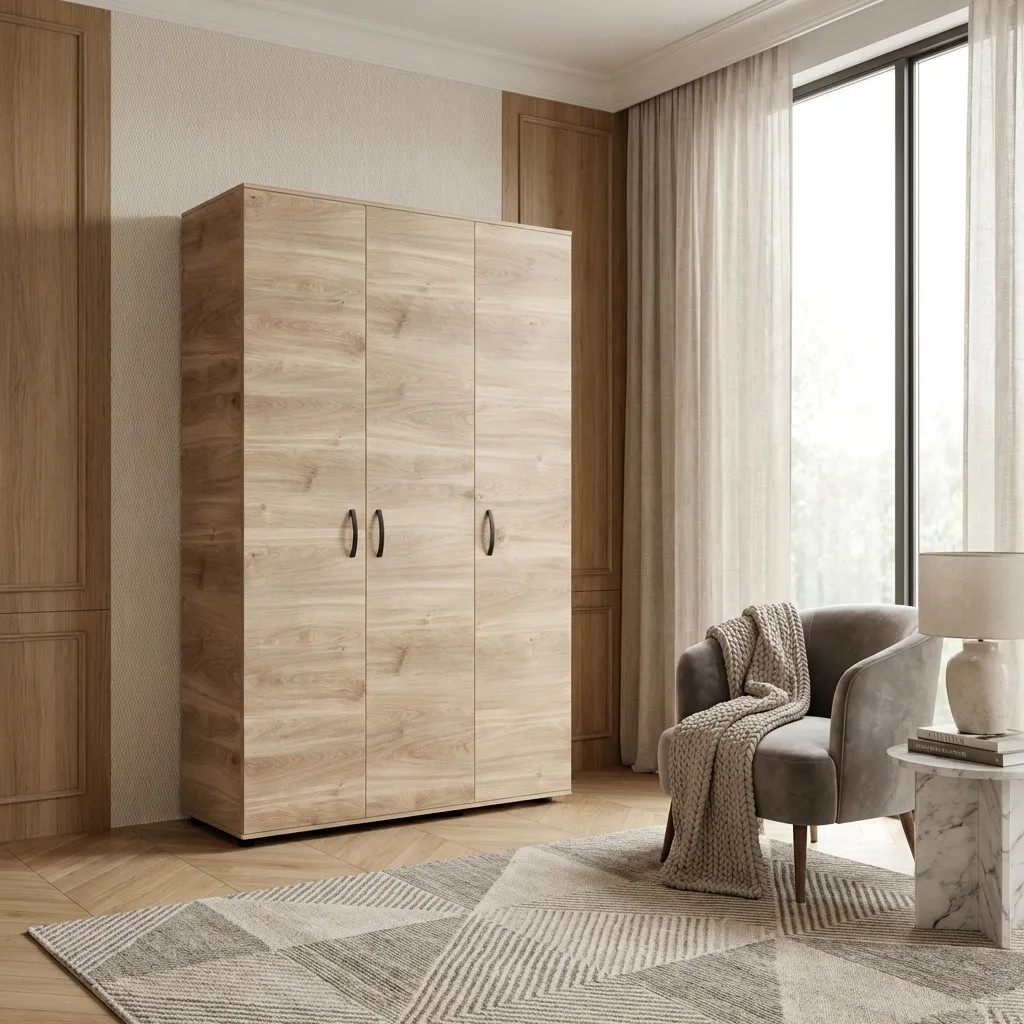 L'Art. CAP 503563 è un guardaroba a 3 ante battenti che coniuga una straordinaria capacità contenitiva con un design d'ispirazione naturale. La finitura in Rovere Miele (K358) si distingue per le sue tonalità calde e le venature realistiche, rendendo questo armadio il protagonista indiscusso della camera da letto o di un ampio corridoio. Con una larghezza di 120 cm, la struttura interna è razionalmente divisa per ospitare sia capi appesi che biancheria piegata, offrendo una soluzione d'ordine completa.