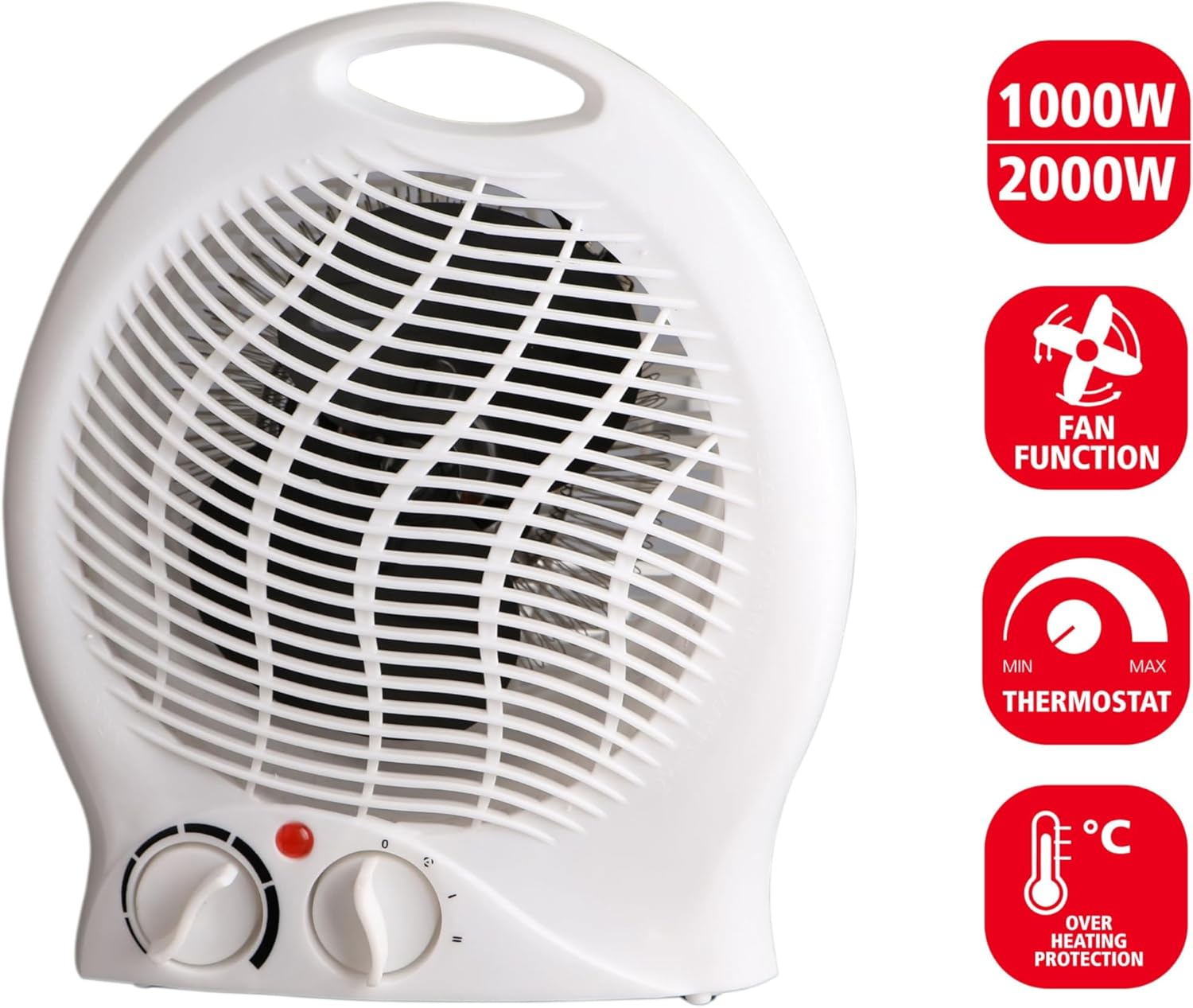 Potenza Regolabile: Dotato di selettore per impostare la potenza desiderata (1000W / 2000W), permettendo di gestire il comfort climatico e ottimizzare i consumi energetici.