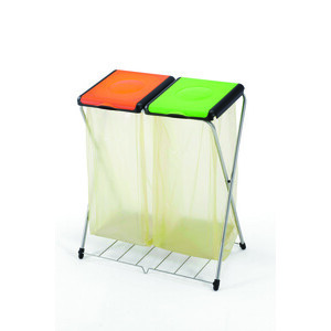 La Pattumiera Gimi Duo è il supporto ideale per gestire contemporaneamente due flussi di rifiuti (ad esempio Plastica e Carta) in un unico ingombro. Grazie alla sua struttura a cavalletto in acciaio trattato e ai due coperchi colorati separati, permette di fissare due sacchi distinti in modo ordinato. La caratteristica distintiva di questo modello è la griglia di appoggio inferiore, che evita che i sacchi tocchino direttamente il suolo, proteggendoli da umidità, sporco e strappi accidentali.