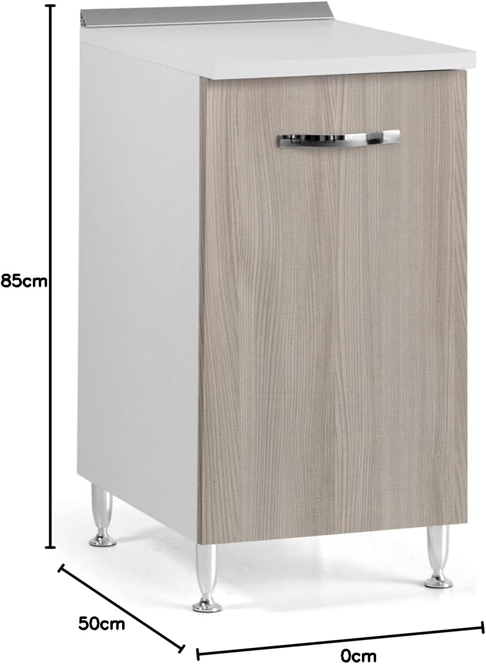La struttura rispetta l'altezza standard di 85 cm, garantendo un allineamento impeccabile con gli altri moduli cucina per una superficie di lavoro continua. La profondità di 50 cm permette di stivare comodamente pentole, robot da cucina o scorte alimentari. Costruito con materiali di qualità resistenti all'uso quotidiano e progettato per un montaggio in kit rapido e intuitivo, l'Art. 17592 è la soluzione pratica e di design per chi vuole rinnovare la cucina con la garanzia di una consegna rapida.