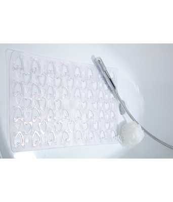 - Sicurezza Anti-scivolo: La texture superficiale con cuoricini a rilievo aumenta l'attrito tra piede e superficie, prevenendo cadute anche con residui di bagnoschiuma.