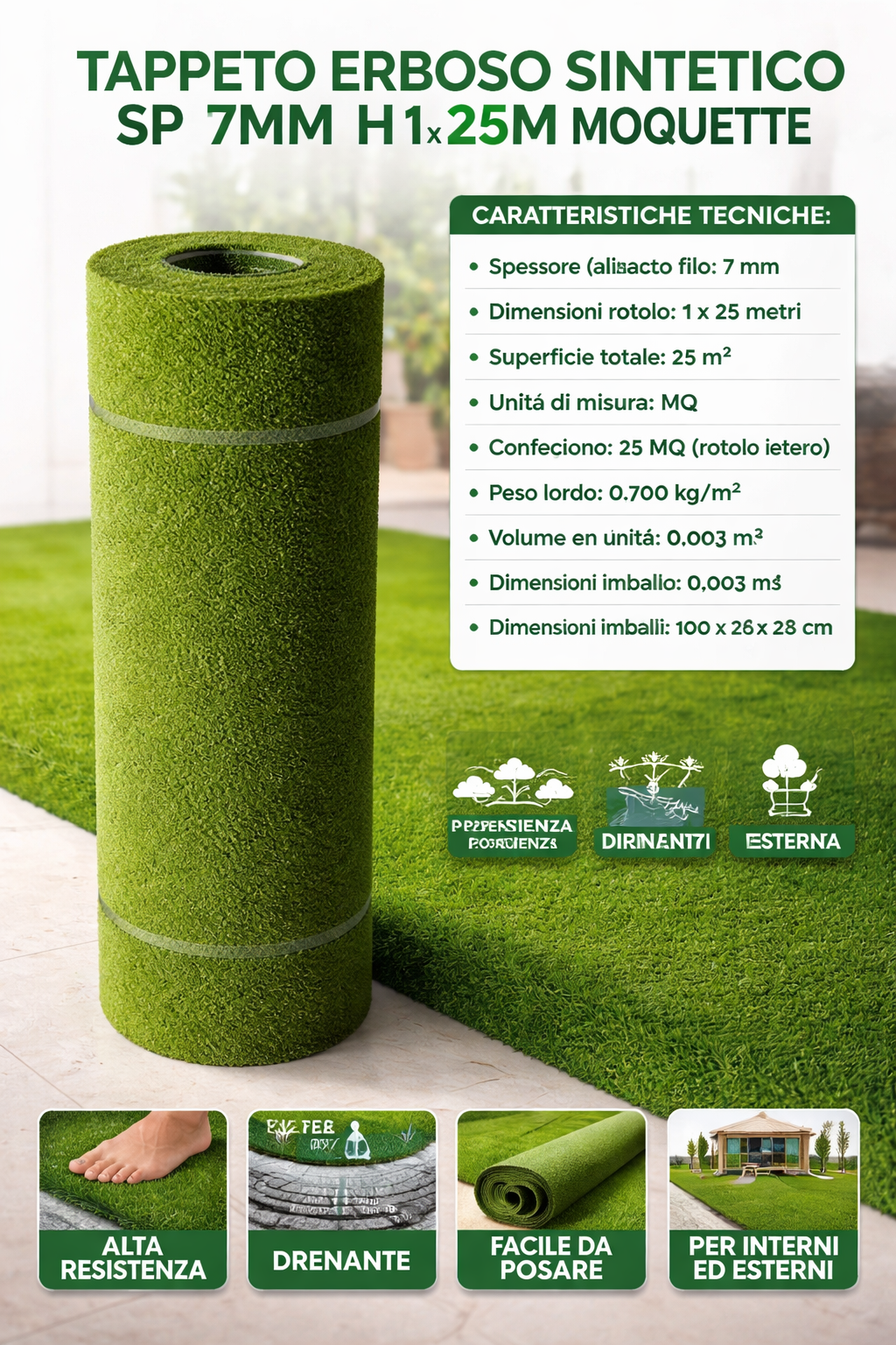 Scheda Tecnica: TAPPETO ERBOSO SINTETICO H 1 x 25 M
