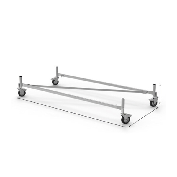 Base completa per trabattello Grim, realizzata in acciaio e dotata di ruote con freno.