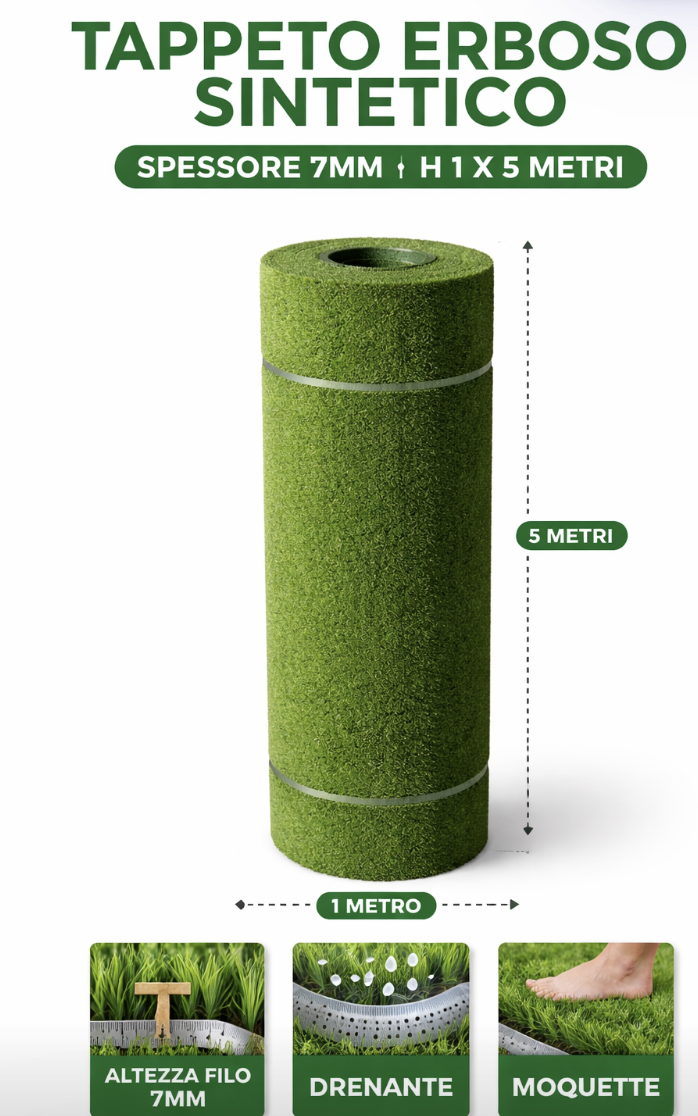 Scheda Tecnica: TAPPETO ERBOSO SINTETICO H 1 x 5 M