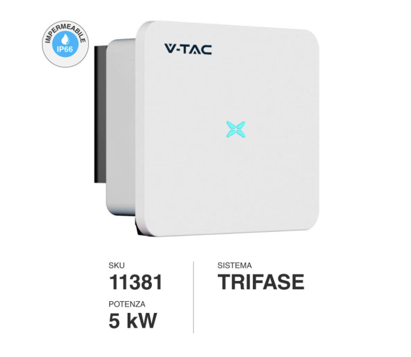 L'articolo ERC11381 (SKU V-Tac 11381) identifica l'Inverter Trifase On-Grid da 5kW della serie INVT iMars MG, distribuito da V-Tac.