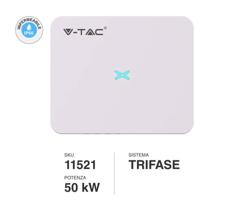 L'articolo ERC11521 (SKU V-Tac 11521) identifica l'Inverter Trifase On-Grid da 50kW della serie INVT iMars XG, distribuito da V-Tac.