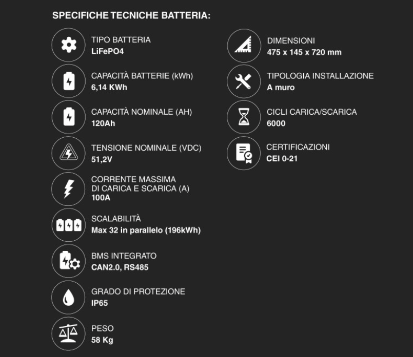 Capacità: 6,14 kWh / 120 Ah (maggiore rispetto ai classici 100Ah).