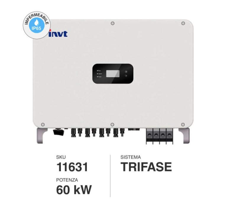 Questo inverter rappresenta una soluzione ad alta densità di potenza per il settore Commercial & Industrial (C&I). Con una capacità di 60kW, è progettato per massimizzare il rendimento di grandi coperture industriali, centri commerciali o aziende con cicli produttivi energivori. È pienamente conforme alla normativa CEI 0-21 (e spesso supporta la CEI 0-16 per allacci in Media Tensione).