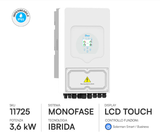 Questa configurazione rappresenta il pacchetto tecnologico ideale per chi dispone di un contratto di fornitura standard (tipicamente da 3 kW) e desidera ottimizzare l'autoconsumo residenziale. Grazie alla protezione IP65 e al design modulare della batteria, il sistema si adatta facilmente a diversi contesti di installazione, dal garage ai locali tecnici.