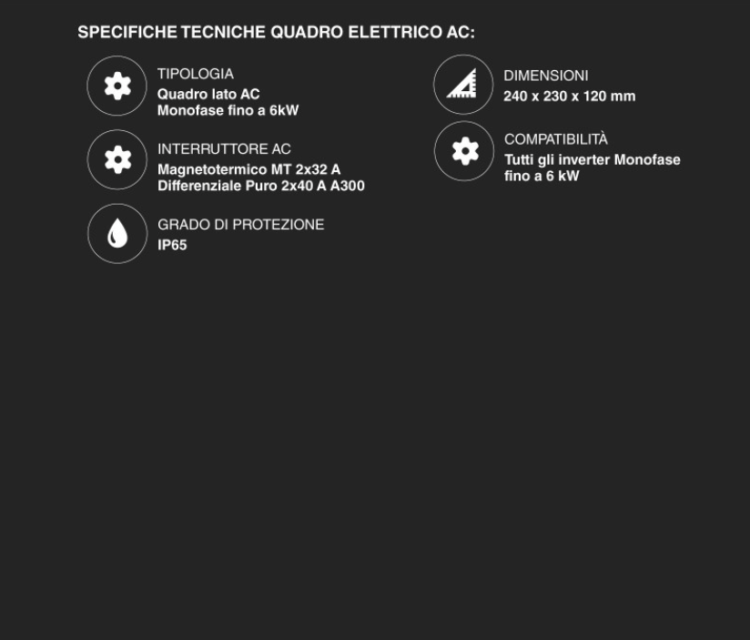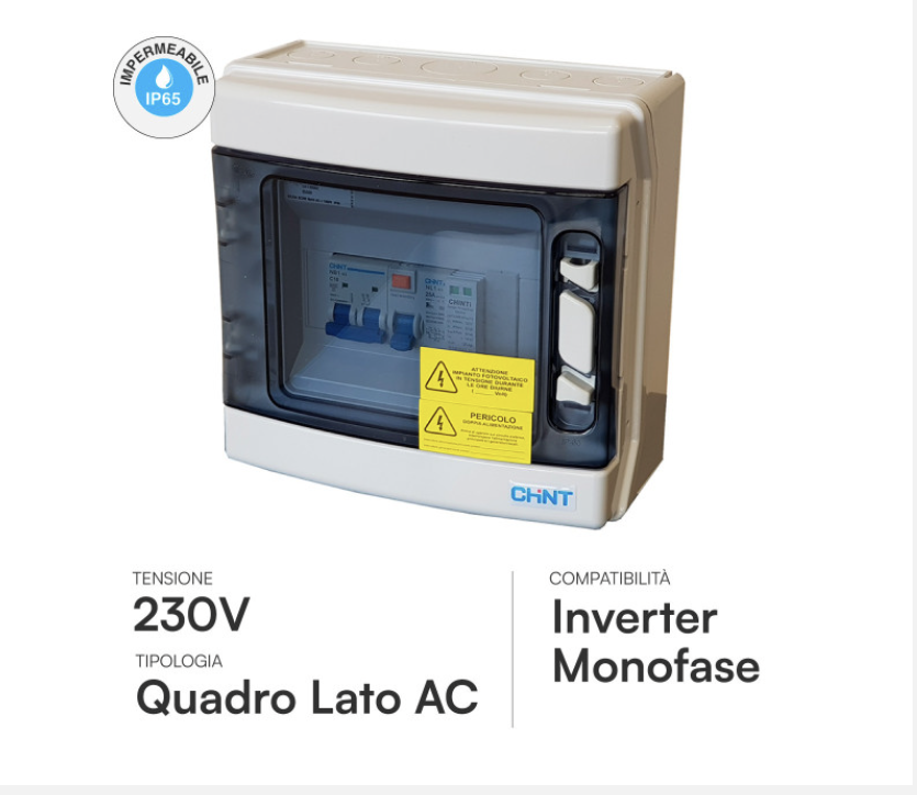Quadro AC: Include magnetotermico differenziale per la protezione della linea verso il contatore di casa.