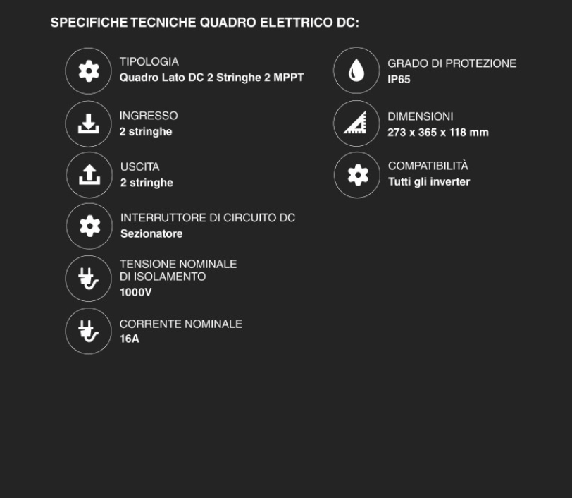 Configurazione: Doppio MPPT (permette di dividere i 12 pannelli in due stringhe da 6 moduli l'una, ideale se il tetto ha due esposizioni diverse o ombreggiamenti parziali).