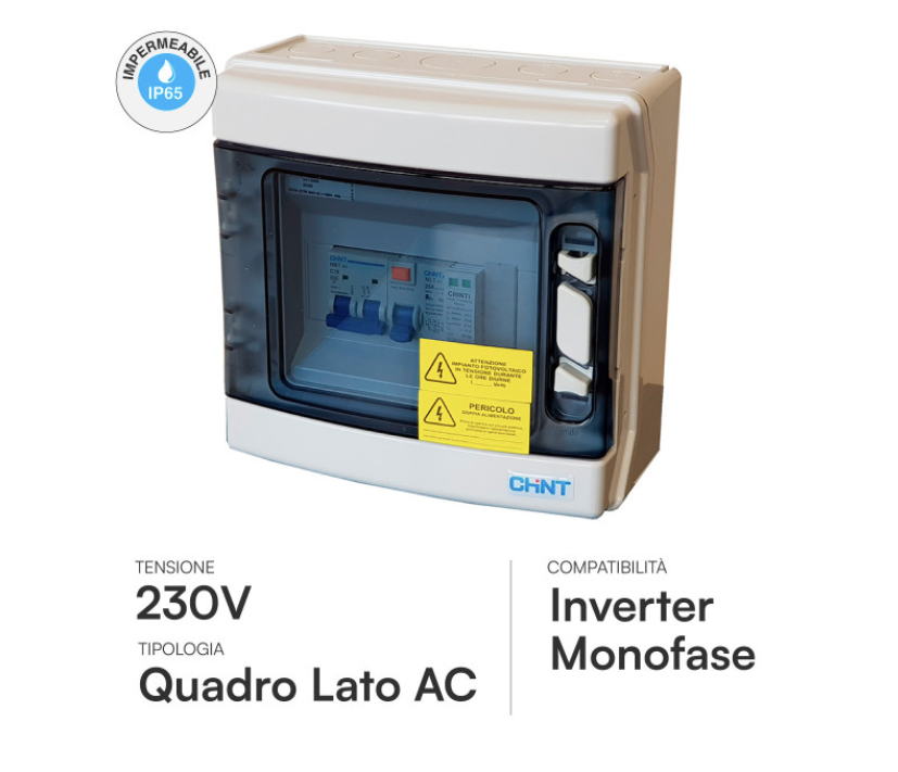 Quadro AC: Centralino di protezione lato rete per la connessione sicura al contatore.