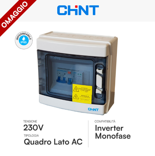Questo kit rappresenta una soluzione tecnica bilanciata e pronta all'installazione, ideale per utenze residenziali con contratti da 3 kW o 4,5 kW. La scelta di separare il quadro DC dal quadro AC (Chint) garantisce una maggiore flessibilità nel posizionamento dei componenti e una protezione dedicata per ogni sezione dell'impianto.