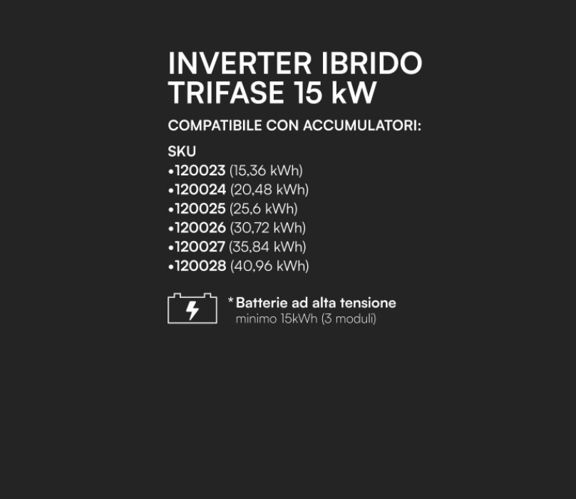 L'ART. ERC12226 rappresenta il top di gamma per la categoria da 15kW. È un inverter trifase ibrido progettato per scenari ad alte prestazioni, dove la potenza bruta si sposa con i più stringenti standard di protezione e conformità normativa italiana.