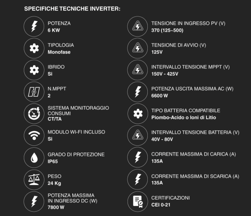 2. Inverter Ibrido Monofase 6kW (Deye/V-TAC SKU 11529)