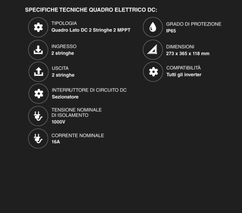 Quadro DC: Include Scaricatori di Sovratensione (SPD) Tipo II (fondamentali per i pannelli TOPCon che sono più sensibili agli sbalzi) e fusibili/sezionatori.