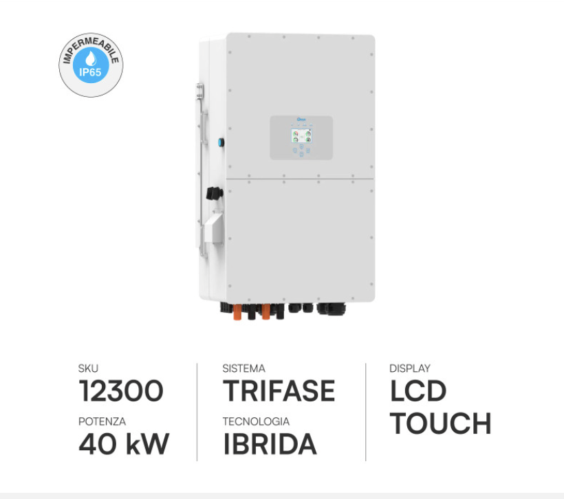 L'ART. ERC12300 è il "peso massimo" della categoria, un inverter trifase ibrido da ben 40kW che sposta il confine tra l'uso residenziale d'eccellenza e l'uso industriale puro. Si tratta di una macchina imponente, progettata per gestire flussi energetici che potrebbero alimentare un intero condominio, una media azienda o un'azienda agricola con processi di automazione pesanti.