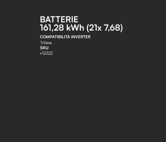 Un sistema di accumulo da 161,28 kWh rappresenta una soluzione di storage energetico di scala industriale (ESS - Energy Storage System), progettata per soddisfare i rigorosi standard italiani di connessione alla rete. La conformità alle norme CEI 0-21 (Bassa Tensione) e CEI 0-16 (Media e Alta Tensione) è fondamentale per l'iter di connessione con il distributore (e-distribuzione, Terna, ecc.).