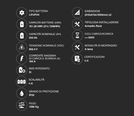 SR 038 Sistema Accumulo LiFePO4 161,28kWh HV - Rack Industriale