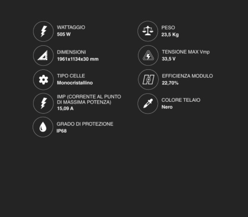 L'ART. ERC12640 rappresenta l'eccellenza di Trina Solar nella categoria dei moduli ad alta potenza. Con i suoi 505W di picco e il raffinato telaio nero, questo pannello si integra con la stessa solidità architettonica dei vostri progetti ART. GHF, richiamando la stabilità del Tavolo Virella.