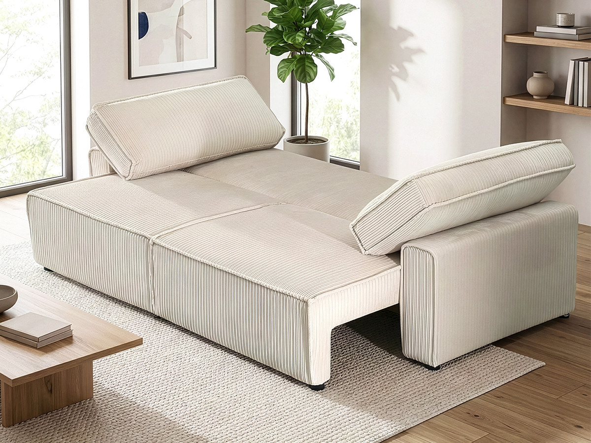 Divano "Montaigne" con box - 245 x 102 x 88 cm - Dritto - Trasformabile - 3 posti - Velluto a coste - Beige.