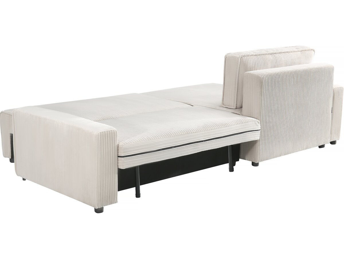 Divano angolare trasformabile e reversibile "Montaigne" - 282 x 153 x 93 cm - Contenitore - Velluto a coste - Beige.