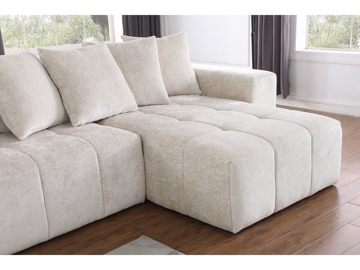 Divano angolare "Haussmann" - 310 x 172 x 77 cm - Beige - Posti a sedere 3 - Numero di cuscini 5 - Dimensioni cuscino 60 x 60 - Tipo di tessuto utilizzato: CinigliaDivano angolare "Haussmann" - 310 x 172 x 77 cm - Beige:Questo divano angolare "Haussmann " a 3 posti è molto moderno e dispone di un'ampia chaise longue che offre una notevole quantità di spazio con una superficie di 310 x 172 x 77 cm. Il design elegante del divano "Haussmann" aggiungerà un tocco di stile e sobrietà al vostro salotto. Il suo aspetto elegante e le sue proporzioni generose non passeranno inosservate e questo modello diventerà rapidamente il fulcro del vostro arredamento. Oltre al design, questo modello offre un comfort unico grazie alla seduta e allo schienale in schiuma ad alta densità. Quindi, regalatevi questo magnifico divano angolare in tessuto!