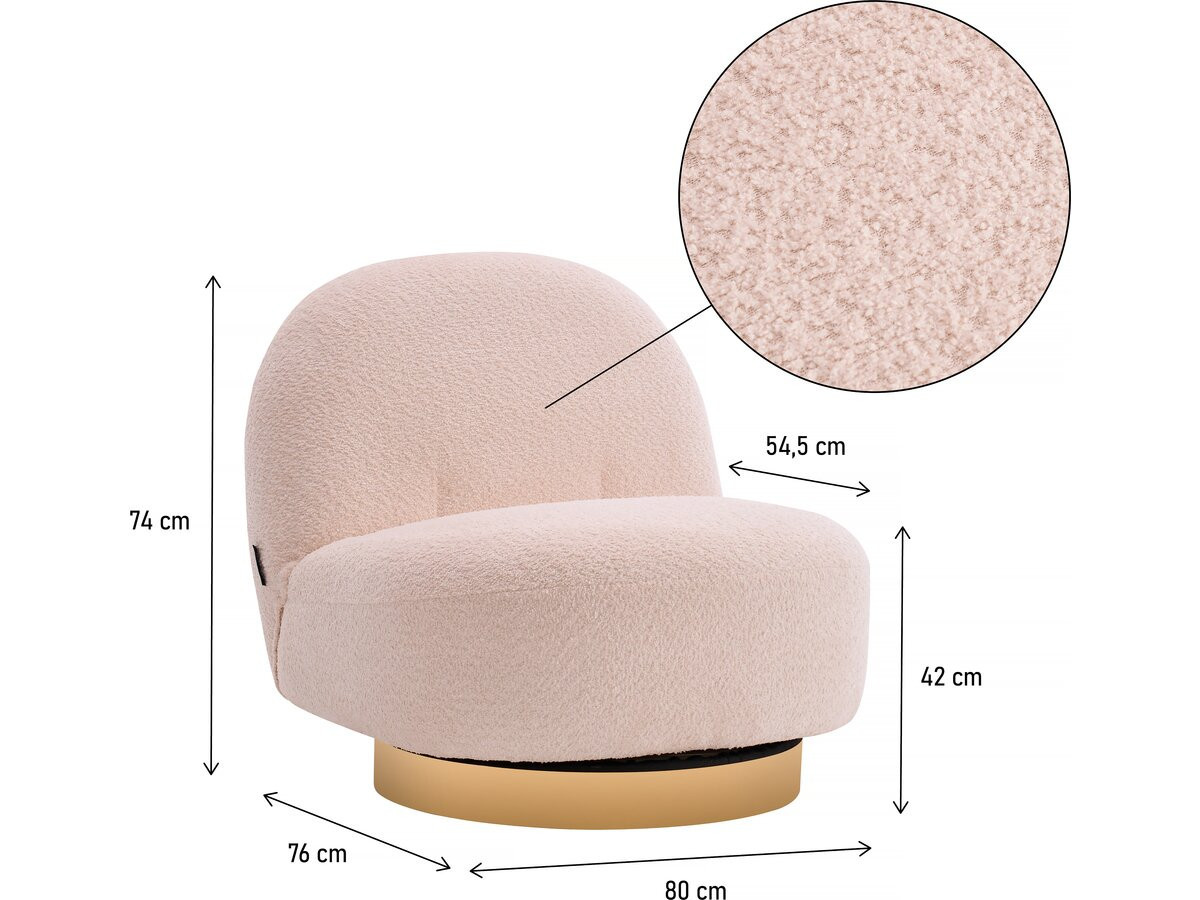 Poltrona girevole design Bouclette - 83 x 84 x 81 cm - Bouclette - Bianco - Base oro