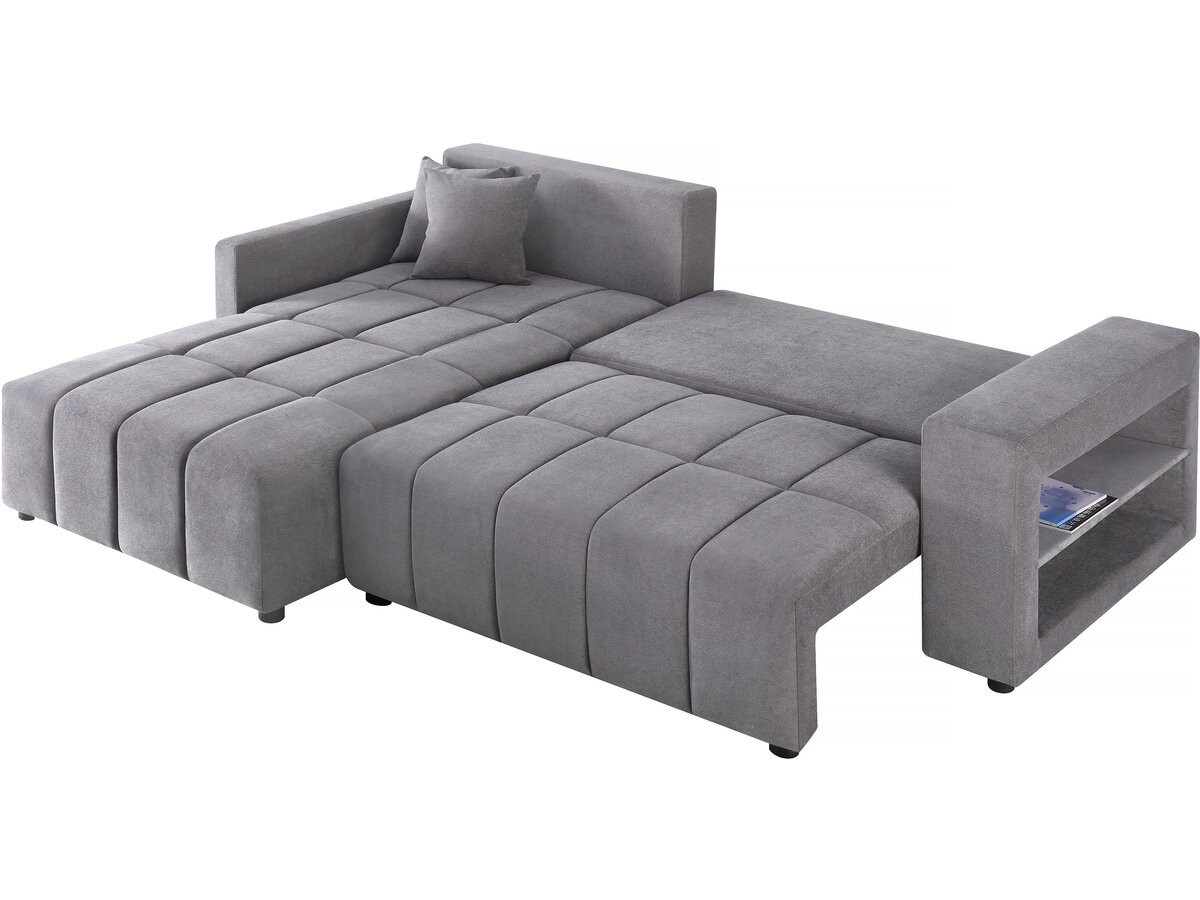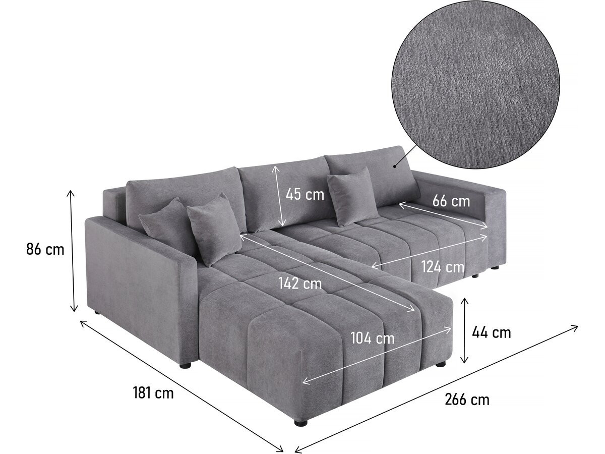 Divano angolare trasformabile e reversibile con cassapanca in tessuto a 3 posti "Trocadero" - 3 cuscini schienale - 264 x 178 x 88 cm - 3 posti - GrigioDivano ad angolo in tessuto 3 posti - "Trocadero" - Grigio: Il divano ad angolo in tessuto "Trocadero" è eleganza e comodità, offre uno spazio ampio per rilassarsi in tutta tranquillità. Dotato di tre comode sedute, questo divano è dotato con tre cuscini schienale per un sostegno aggiuntivo e un comfort ottimale. Il suo rivestimento in tessuto moderno e di qualità garantisce morbidezza e resistenza, invitando a lunghi momenti di relax. La sua configurazione ad angolo ottimizza lo spazio aggiungendo un tocco contemporaneo alla tua stanza.