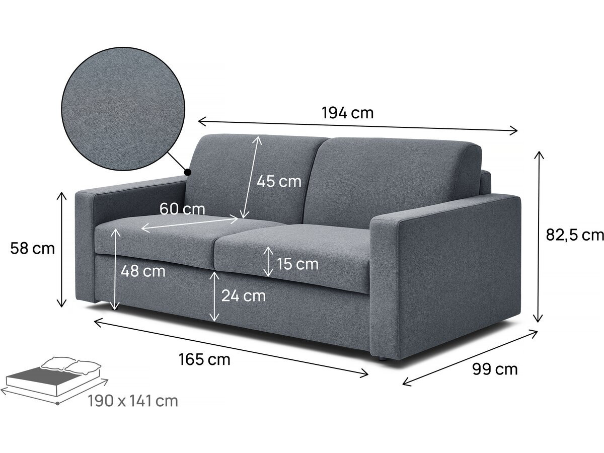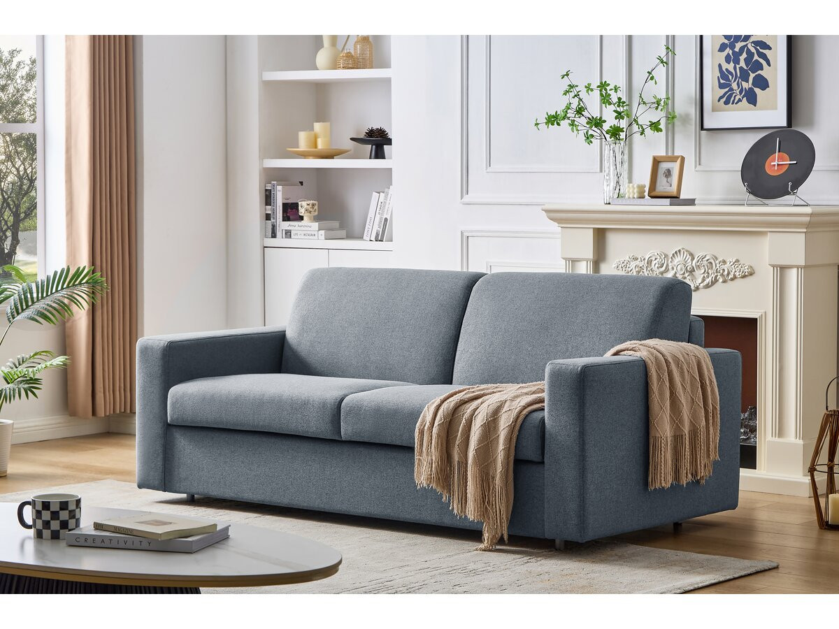 Divano letto dritto con materasso express "Diana" - 3 posti - Dimensioni: 194 x 99 x 82 cm - Funzione convertibile express - Dimensioni letto: 190 x 141 x 56 cm - Peso massimo supportato: 240 kg - Tessuto - GrigioDivano letto in tessuto "Diana" - 194 x 99 x 82 cm - GrigioUnendo semplicità e ingegno, il divano "Diana" è la soluzione ideale per chi cerca un arredo pratico per tutti i giorni senza rinunciare al comfort. Con le sue generose dimensioni di 194 x 99 x 82 cm, offre una comoda seduta per tre persone e si adatta altrettanto bene a spazi ridotti come a soggiorni più ampi.Il suo vero punto di forza risiede nella sua funzione convertibile: in pochi secondi si trasforma in un letto da 190 x 141 cm, ideale per ospitare ospiti o per creare una zona notte aggiuntiva. Il suo meccanismo semplice e veloce consente un utilizzo intuitivo e senza sforzo. Robusto e affidabile, può sostenere fino a 240 kg, garantendo un utilizzo senza pensieri nel tempo. Il suo rivestimento in tessuto grigio, morbido al tatto e di facile manutenzione, dona un tocco caldo e sobrio al vostro ambiente.Il divano "Diana" è la scelta perfetta per chi desidera ottimizzare lo spazio senza rinunciare al comfort quotidiano. Funzionale ma non ingombrante, è un'aggiunta essenziale al tuo soggiorno.Regalati un divano che soddisfi tutte le tue esigenze con stile. Adotta il divano "Diana" e trasforma la tua casa in uno spazio tanto accogliente quanto pratico.