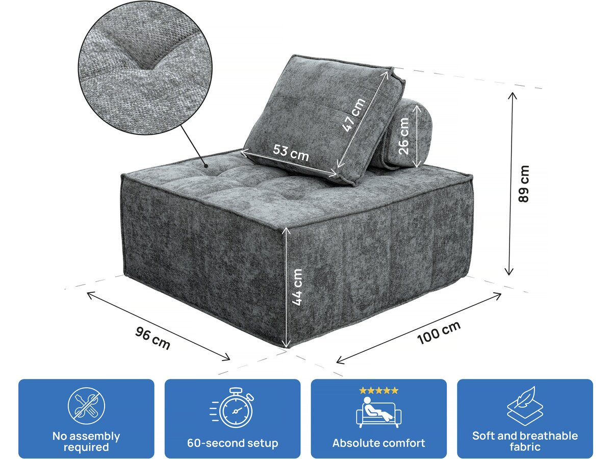 Divano 2 posti "Velluto" - Set di 2 poltrone - Dimensioni: 96 x 100 x 89 cm - Peso del tessuto: 300 g/m² - Tessuto testurizzato - grisChaise longue in tessuto testurizzato Velveto - 96 x 100 x 89 cm - Grigio.La chaise longue Velveto offre una seduta spaziosa e confortevole .Con le sue generose dimensioni di 96 x 100 x 89 cm , è ideale per rilassarsi o intrattenere gli ospiti. Rivestito in un tessuto grigio testurizzato con una grammatura di 300 g/m² , il materiale si distingue per la sua morbidezza al tatto e la sua durevolezza quotidiana. La seduta, realizzata interamente in schiuma , offre un comfort morbido e avvolgente , pronto all'uso senza bisogno di alcun montaggio aggiuntivo. Che si tratti del soggiorno, della camera da letto o della zona lettura, la chaise longue "Velluto" porta un tocco di stile e un comfort incomparabile ai vostri interni.
