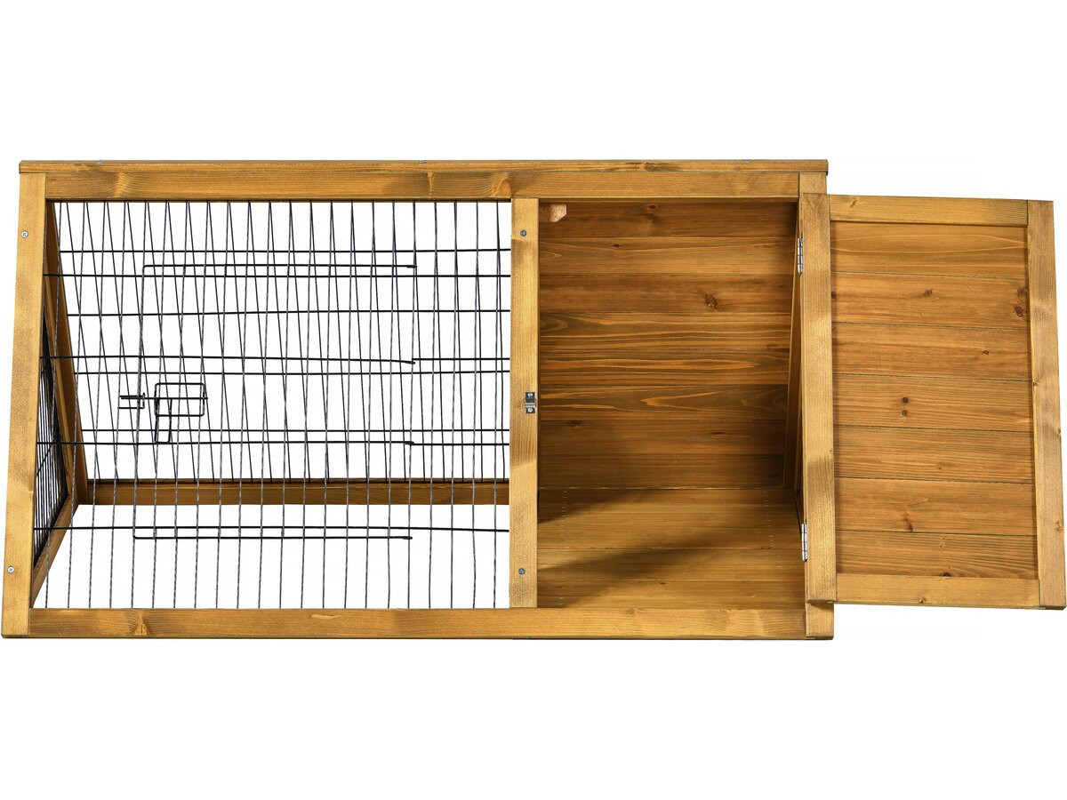 La sua robusta struttura in legno garantisce un'eccellente stabilità e una lunga resistenza all'uso quotidiano. La finitura marrone naturale del legno si integra armoniosamente, aggiungendo un tocco estetico al vostro giardino o patio. La conigliera " Biscotte " garantisce inoltre una buona ventilazione, essenziale per il benessere dell'animale.