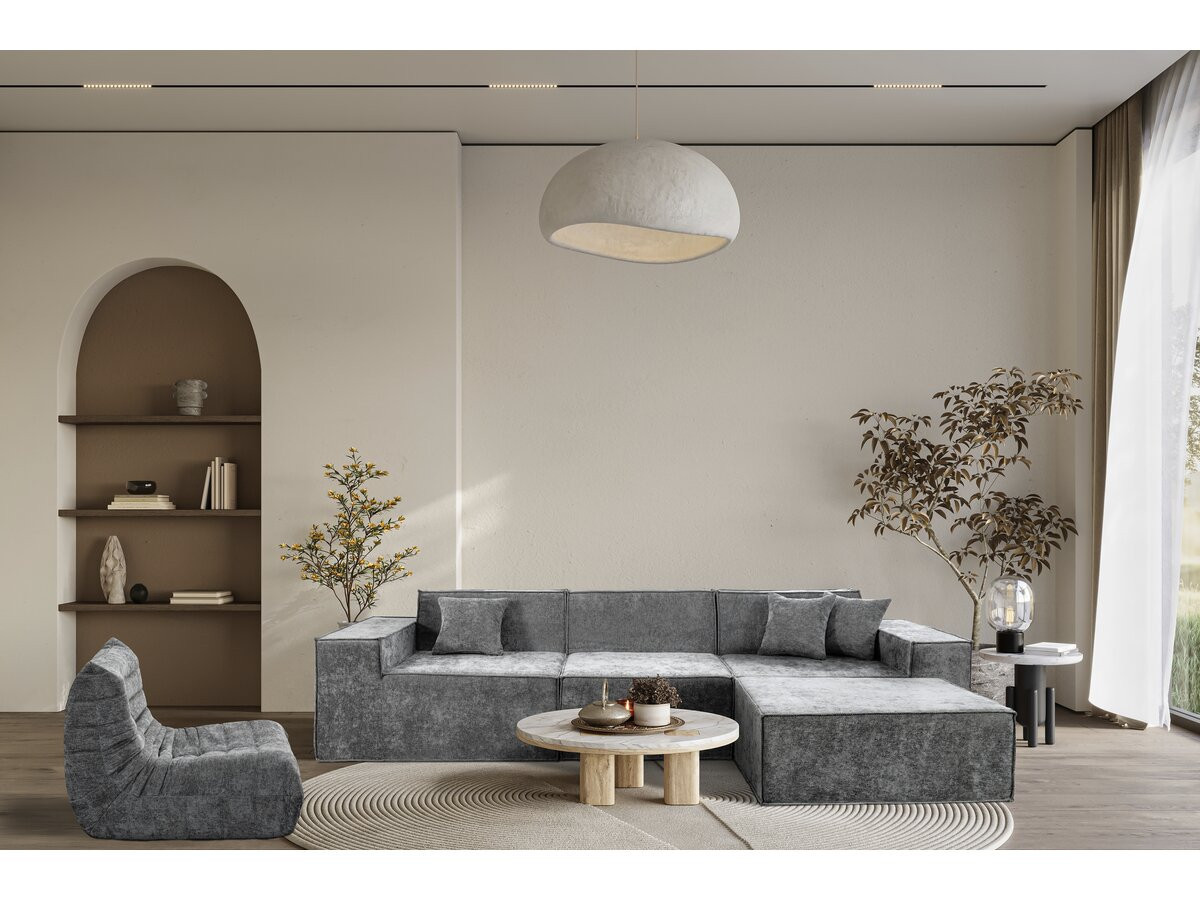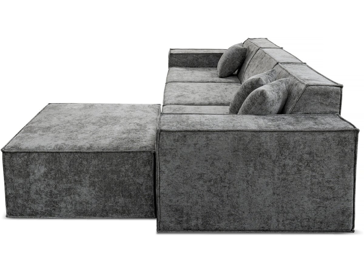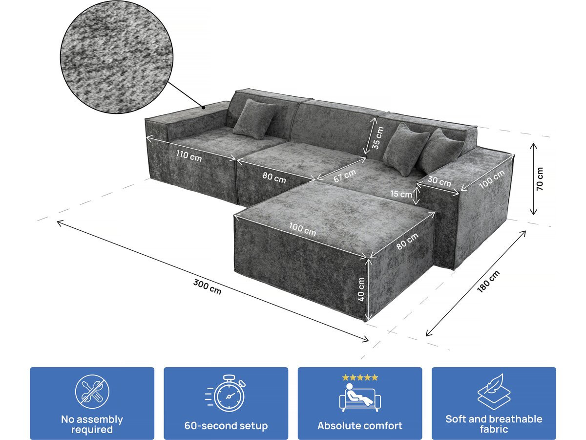 Divano componibile 4 posti con pouf "Lusso" - Dimensioni divano: 300 x 100 x 70 cm - Dimensioni pouf: 80 x 100 x 40 cm - Peso tessuto: 300 g/m² - Tessuto testurizzato - Grigio