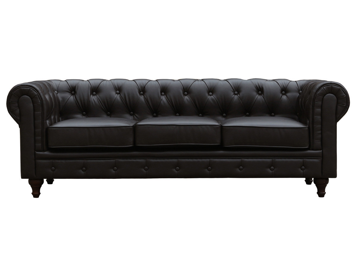 Divano fisso Chesterfield "Aliza" - 3 posti - Dimensioni:204 x 80 x 58 cm - Rivestimento in PU imbottito - Design British - Marrone - Piedi in legnoQuesto divano fisso "Aliza Chesterfield" sarà l'ideale per i vostri momenti di relax. Con il suo velluto, la qualità è garantita. Poi, non resta che lasciarsi trasportare dal suo materiale attraente e dal suo colore brillante. Il suo stile borghese è il compagno perfetto per un momento di svago o una pausa. Prendete un libro e riposatevi. Questo divano senza tempo darà un tocco britannico ai vostri interni!