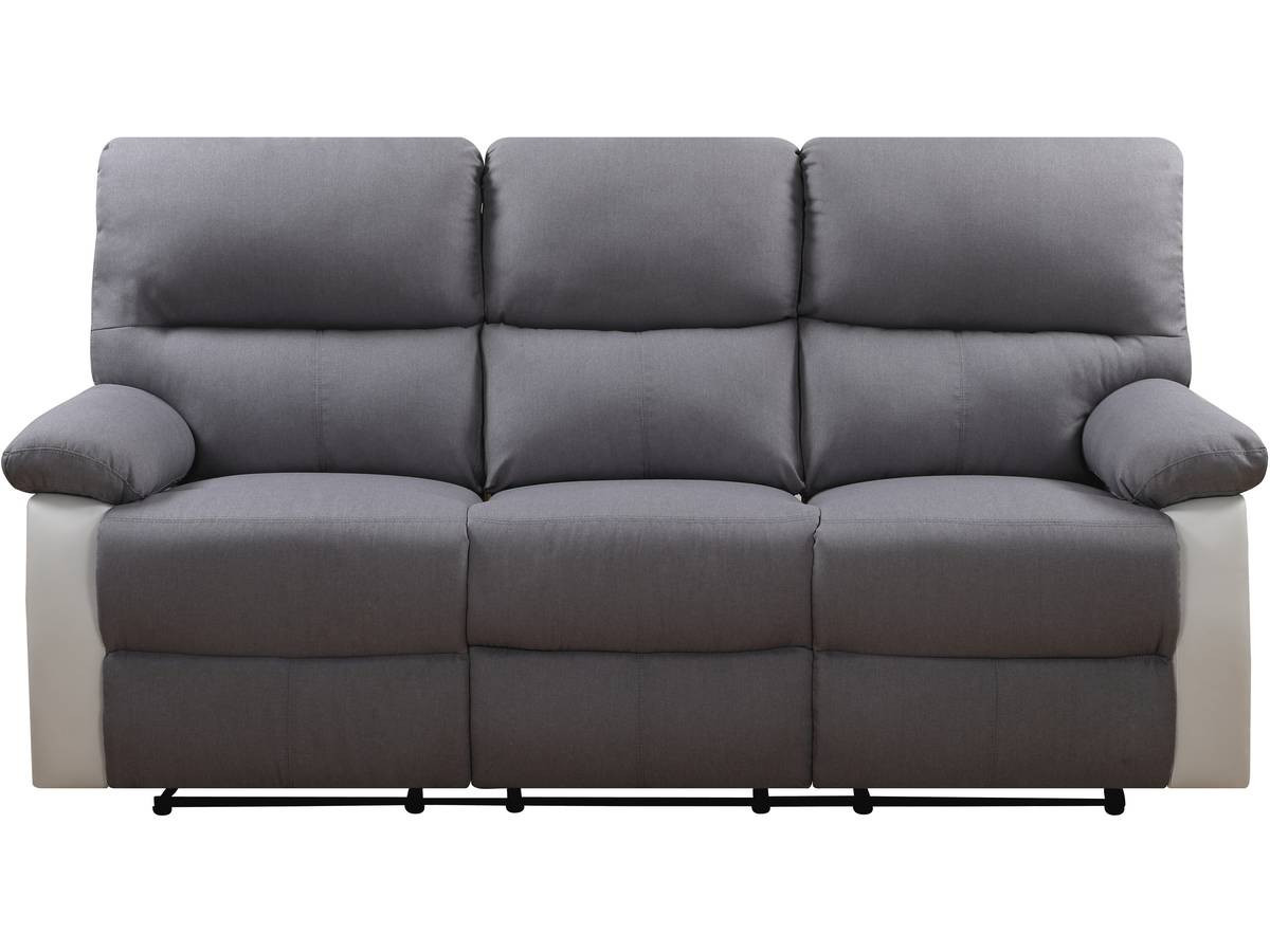 Divano relax "Lincoln" a 3 posti - Bianco / Grigio chiaro - Dimensioni: 197 x 89 x 103 cm - Rivestimento in PU e tessuto - Imbottitura in schiuma e poliesterePoltrona reclinabile LincolnCon la poltrona reclinabile Lincoln, il relax è a portata di mano! La poltrona reclinabile è un elemento d'arredo indispensabile per il soggiorno. È perfetta per leggere un libro, rilassarsi davanti a uno schermo piatto o semplicemente rilassarsi.Dotata di imbottitura in schiuma e poliestere con una densità di 25 kg/m³, vi offrirà il comfort di cui avete bisogno e vi permetterà di rilassarvi in ??tutta tranquillità dal vostro soggiorno o da qualsiasi altra stanza della casa.Inoltre, una maniglia situata sul lato della seduta consente di reclinare manualmente la poltrona reclinabile e di attivare la modalità "relax".
