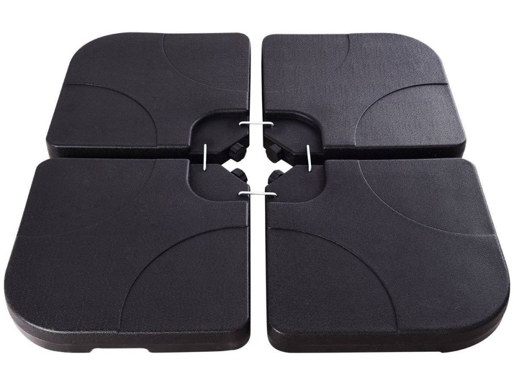 Descrizione- descrittivo :- Lotto di 4 lastre per ombrellone da giardino - Realizzato in polietilene ad alta densità. Riempire con acqua o sabbia per aggiungere peso e fare una pesatura efficace: Capacità massima per lastra: 13kgs