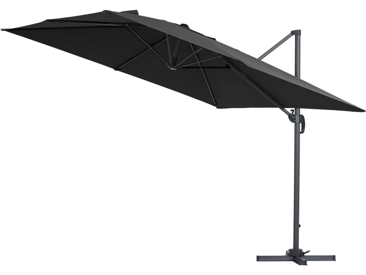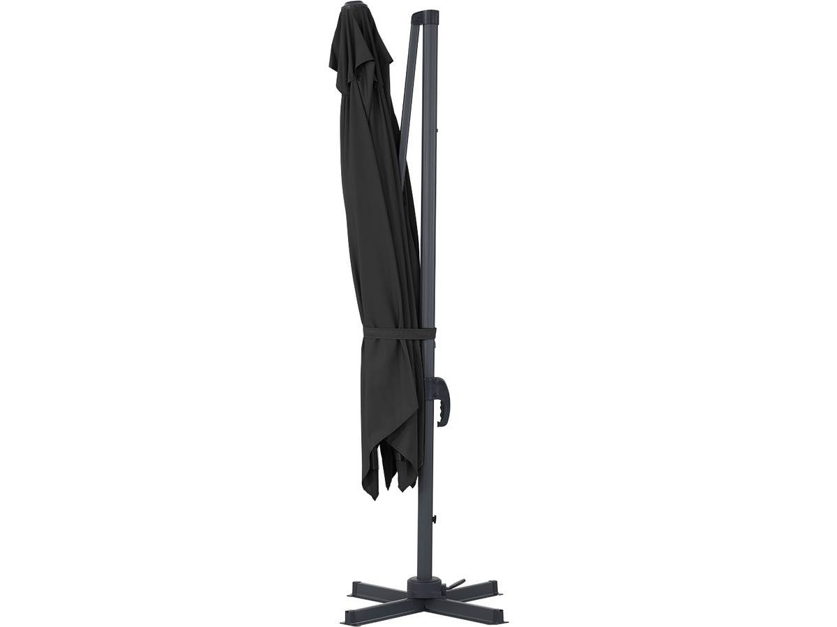 Parasole decentrato da giardino - Struttura in alluminio - 3 x 3 m - Nero - Tessuto in poliestere 200 gr / m2 + Rivestimento protettivoOmbrellone da giardino offset - Struttura in alluminio - 3 x 3 m - Tessuto in poliestere 200 gr/m2+Telo di protezione - Dimensioni del telo : Dia.40 x H220 cm - Per ombrellone di dimensioni chiuse : 40 x 20 x 240 cm - Tessuto in poliestere di densità : 160g/m² - Coulisse - Corda di fissaggio in polipropilene - Impermeabile - Resistente ai raggi UV - Protezione UV30