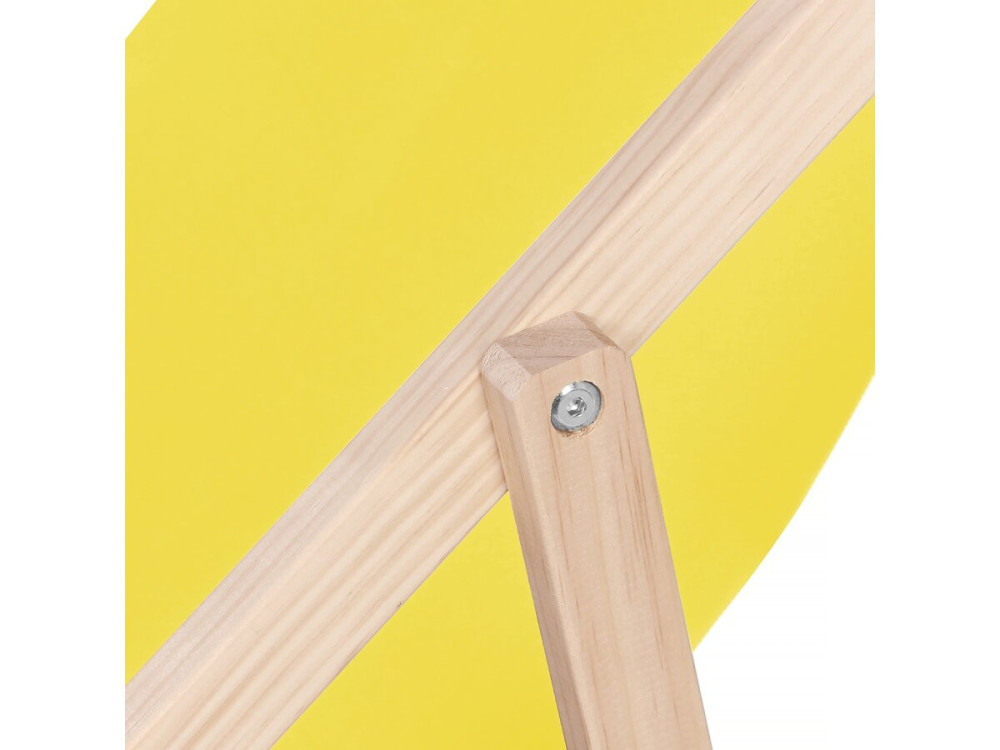 Struttura in Legno: Il legno naturale mitiga la vivacità del giallo, rendendo l'insieme elegante e non eccessivamente "chiassoso".