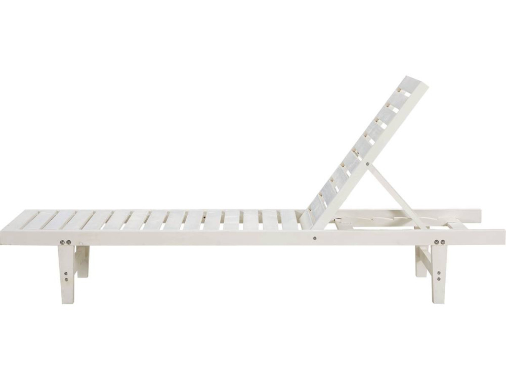 Design: Il bianco su legno non è mai "freddo" come sul metallo; lascia intravedere la texture del materiale, rendendo il lettino un vero pezzo d'arredo per il giardino.