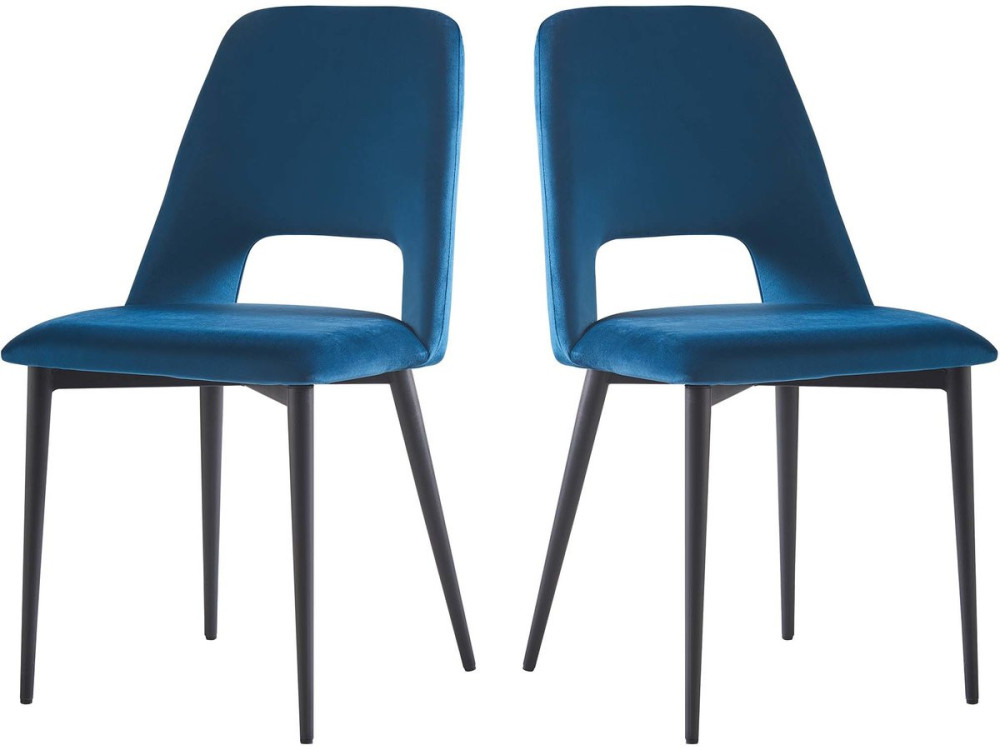 Il Set di 2 sedie "Fedora" (ART. GHF123144) è la quintessenza dell'eleganza magnetica. Il Blu scuro (o Navy), declinato in un tessuto nobile come il velluto, trasforma queste sedie in veri e propri gioielli per la sala da pranzo o per uno studio professionale di classe.