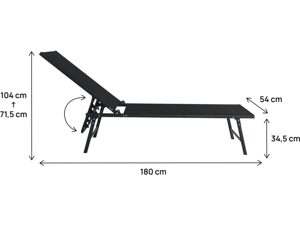 Dimensioni standard "Full Comfort": 180 x 54 x 104 cm - Altezza regolabile: 71,5/104 cm - Altezza seduta: 34,5 cm - 4 inclinazioni