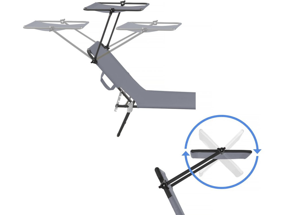 Parasole Orientabile: Come per gli altri modelli "Lazy", il tettuccio integrato ti permette di proteggere il viso e gli occhi dai raggi diretti. È ideale per chi ama leggere sui dispositivi digitali senza riflessi fastidiosi.